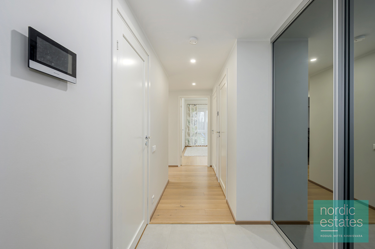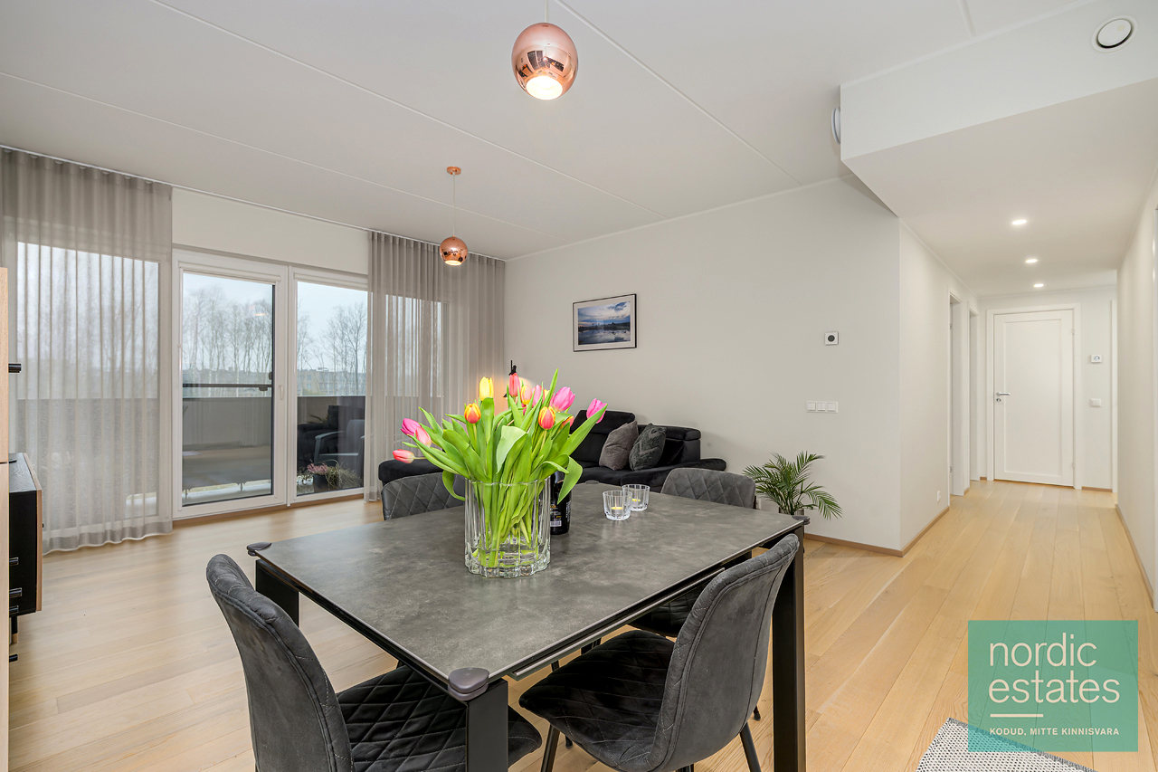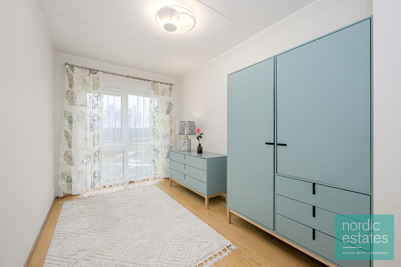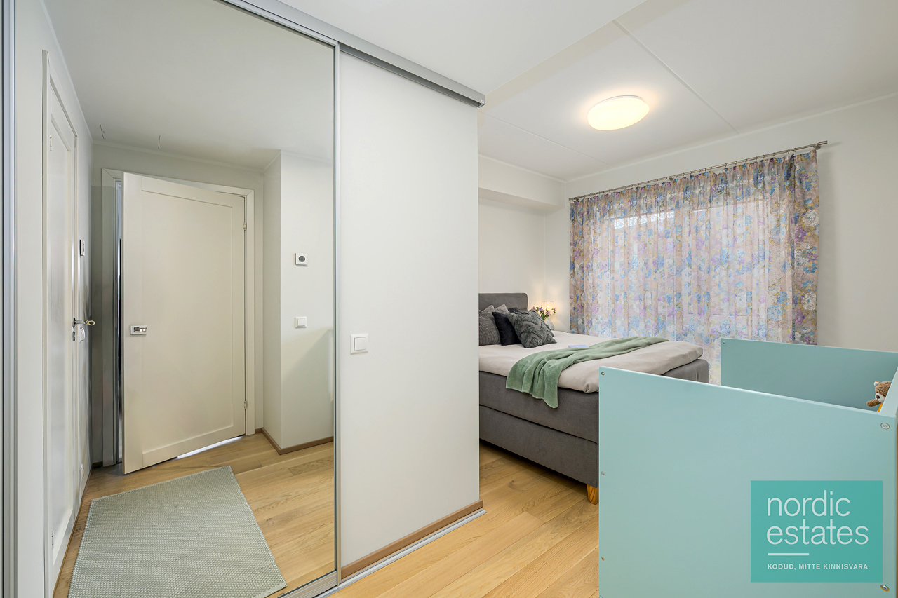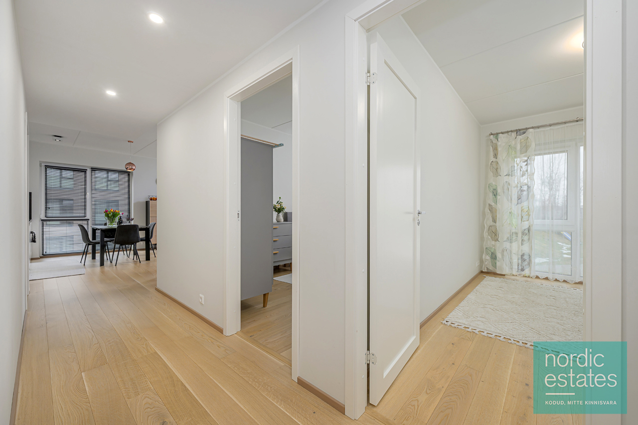 KORTER, mis asub 2. korrusel pakub tänu oma planeeringule võimalust olla nii koos kui eraldi. Korterisse sisenedes saavad silmad puhata, sest üleriided ja muud esiku inventar mahub kenasti kappi peitu. Perenaiste rõõmuks on korteris sees eraldi majapidamisruum. Kahest väiksemast magamistoas ja elutoa aknast avaneb vaade loodusele. Ruumikal rõdul saab soovi korral arendada poti-põllundust ja niisama värsket õhku nautida. Kaks tualetti teevad hommikused toimetused lihtsamaks. Peamises magamistoas asub sissejalutatav garderoob ning sealt samast pääseb ka pesuruumi ja tualetti.