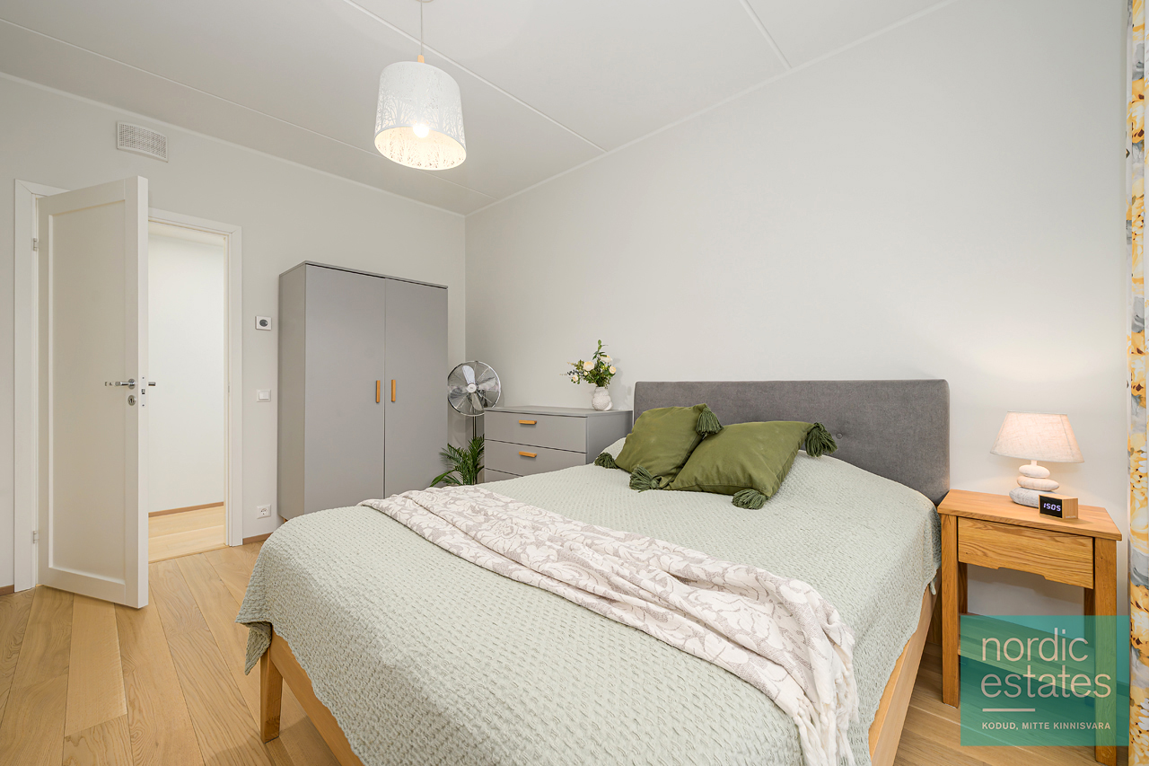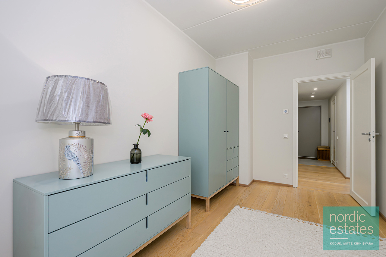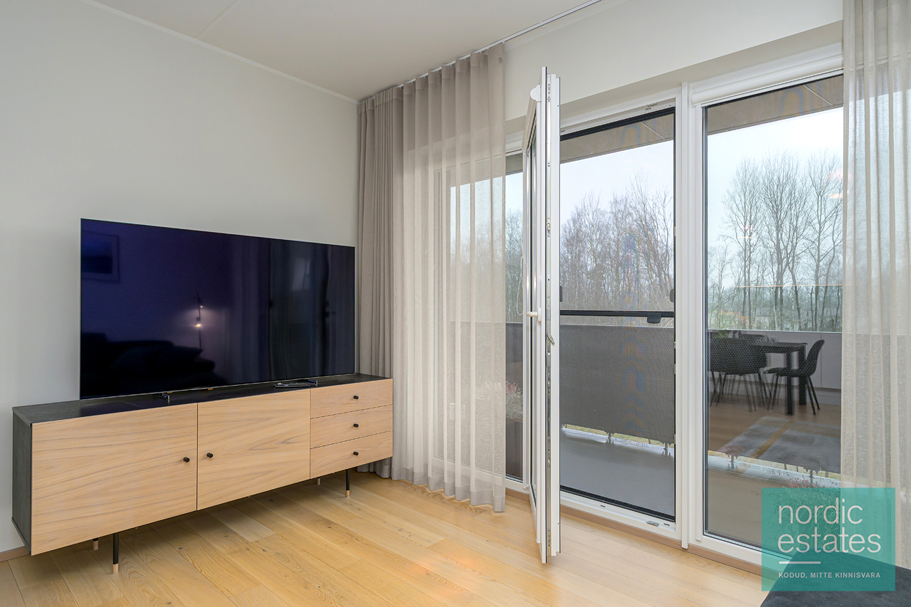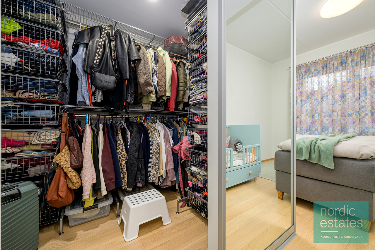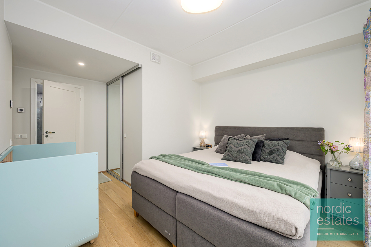 KORTER, mis asub 2. korrusel pakub tänu oma planeeringule võimalust olla nii koos kui eraldi. Korterisse sisenedes saavad silmad puhata, sest üleriided ja muud esiku inventar mahub kenasti kappi peitu. Perenaiste rõõmuks on korteris sees eraldi majapidamisruum. Kahest väiksemast magamistoas ja elutoa aknast avaneb vaade loodusele. Ruumikal rõdul saab soovi korral arendada poti-põllundust ja niisama värsket õhku nautida. Kaks tualetti teevad hommikused toimetused lihtsamaks. Peamises magamistoas asub sissejalutatav garderoob ning sealt samast pääseb ka pesuruumi ja tualetti.