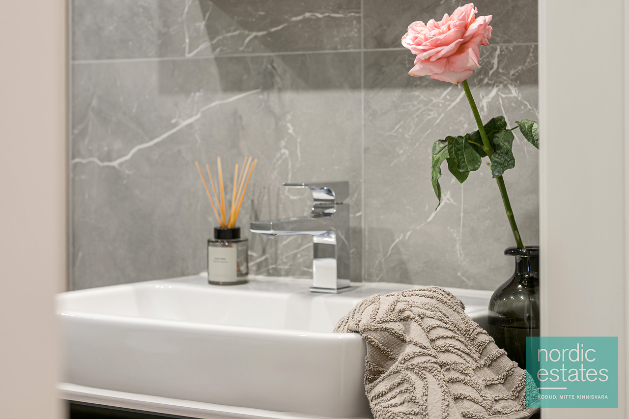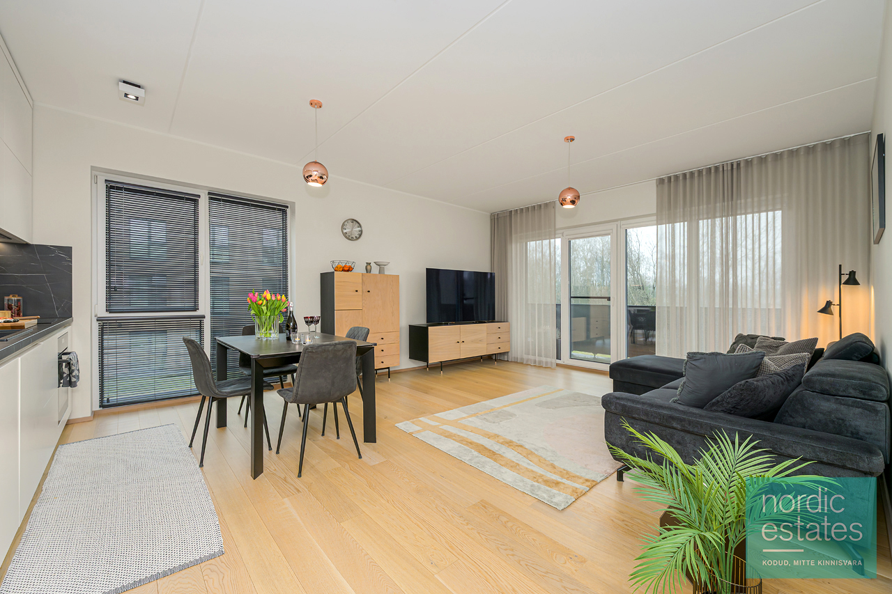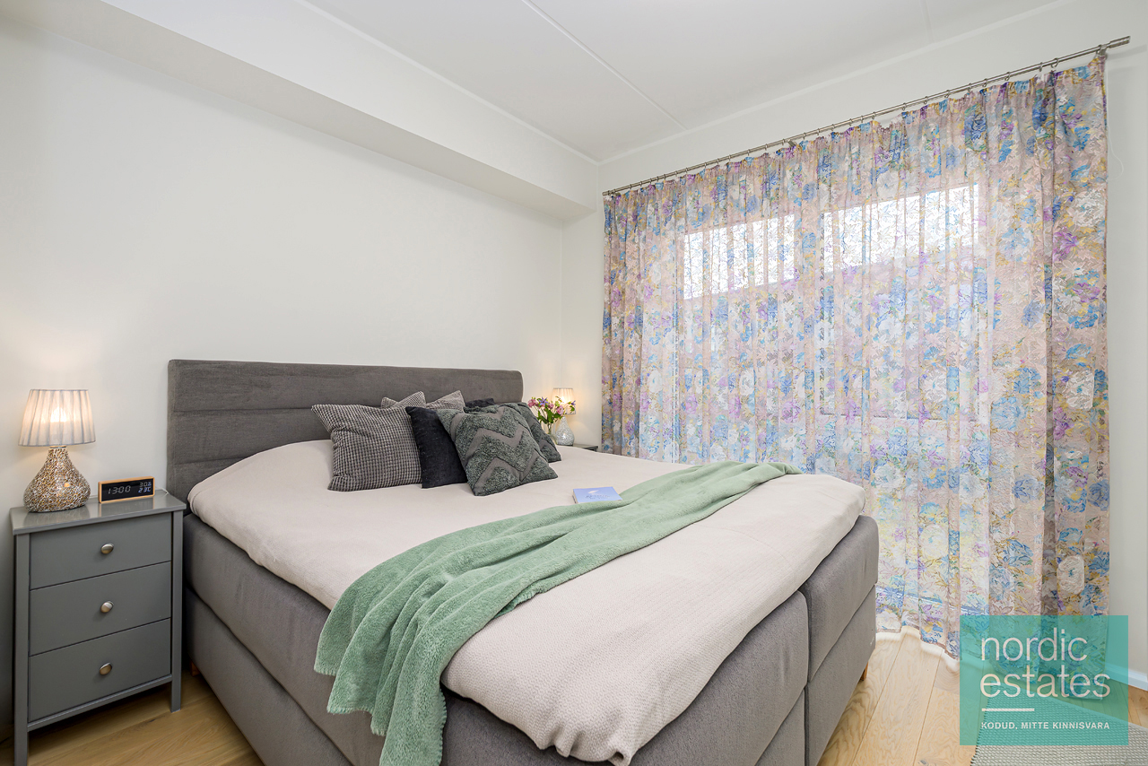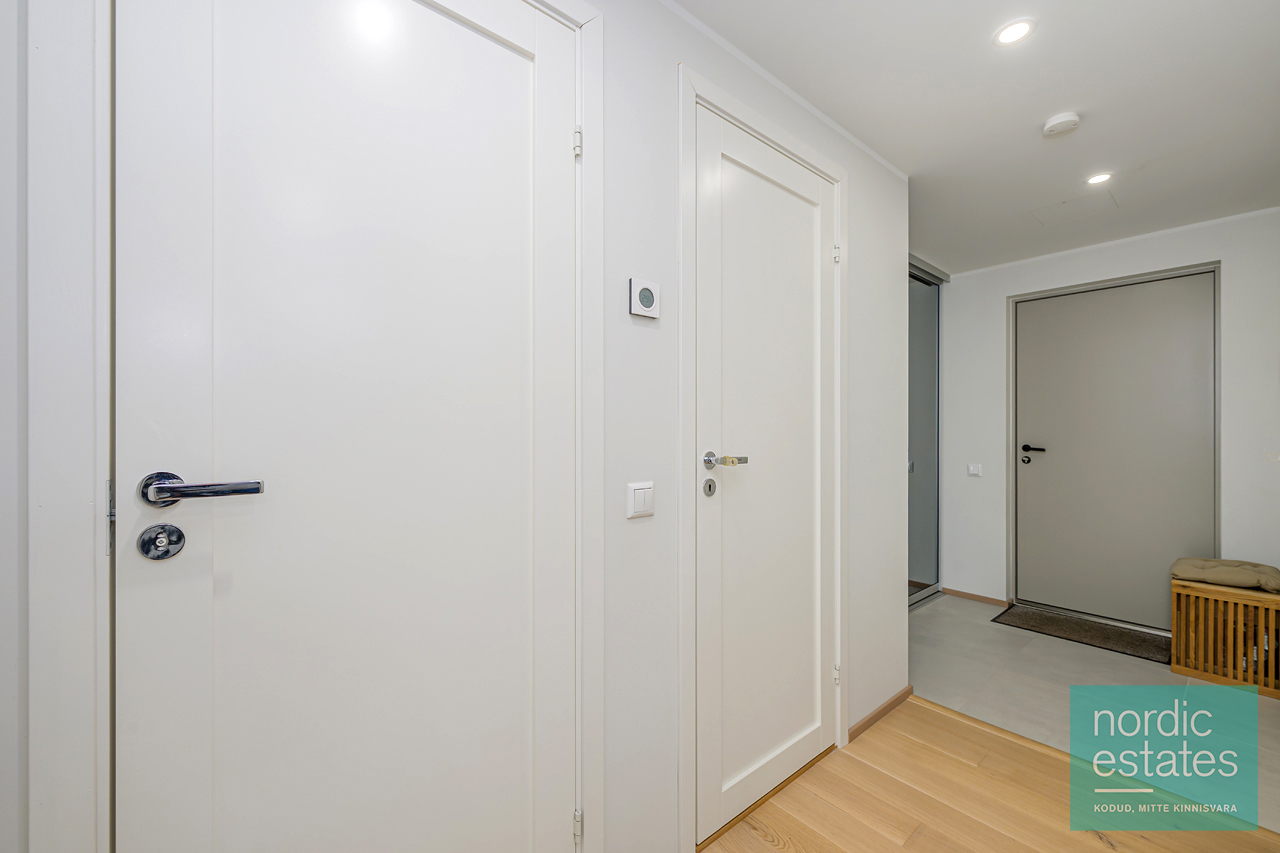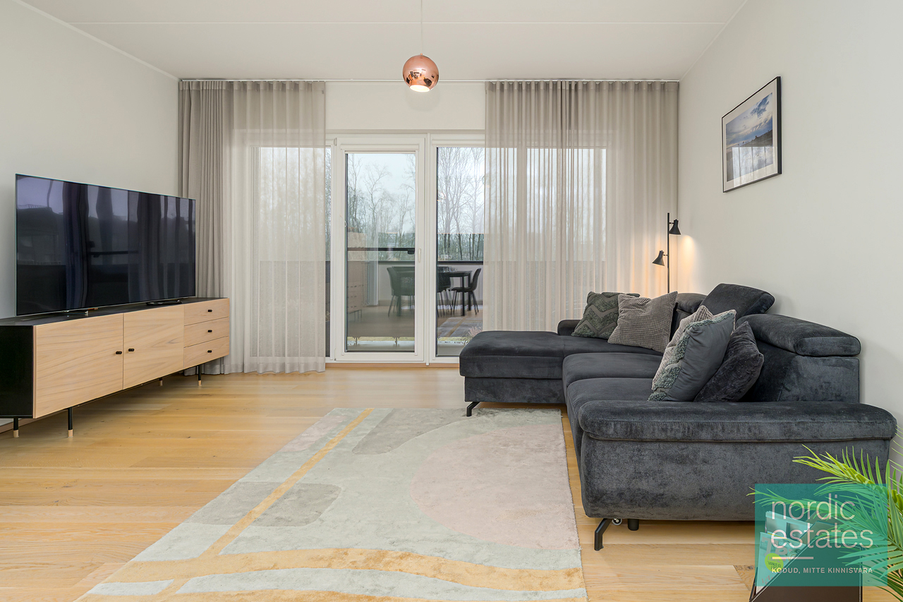 KORTER, mis asub 2. korrusel pakub tänu oma planeeringule võimalust olla nii koos kui eraldi. Korterisse sisenedes saavad silmad puhata, sest üleriided ja muud esiku inventar mahub kenasti kappi peitu. Perenaiste rõõmuks on korteris sees eraldi majapidamisruum. Kahest väiksemast magamistoas ja elutoa aknast avaneb vaade loodusele. Ruumikal rõdul saab soovi korral arendada poti-põllundust ja niisama värsket õhku nautida. Kaks tualetti teevad hommikused toimetused lihtsamaks. Peamises magamistoas asub sissejalutatav garderoob ning sealt samast pääseb ka pesuruumi ja tualetti.