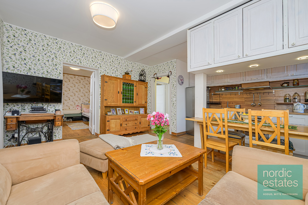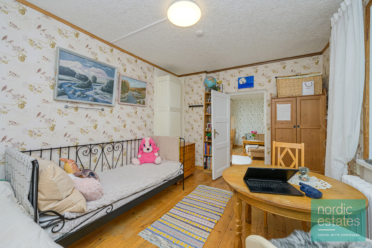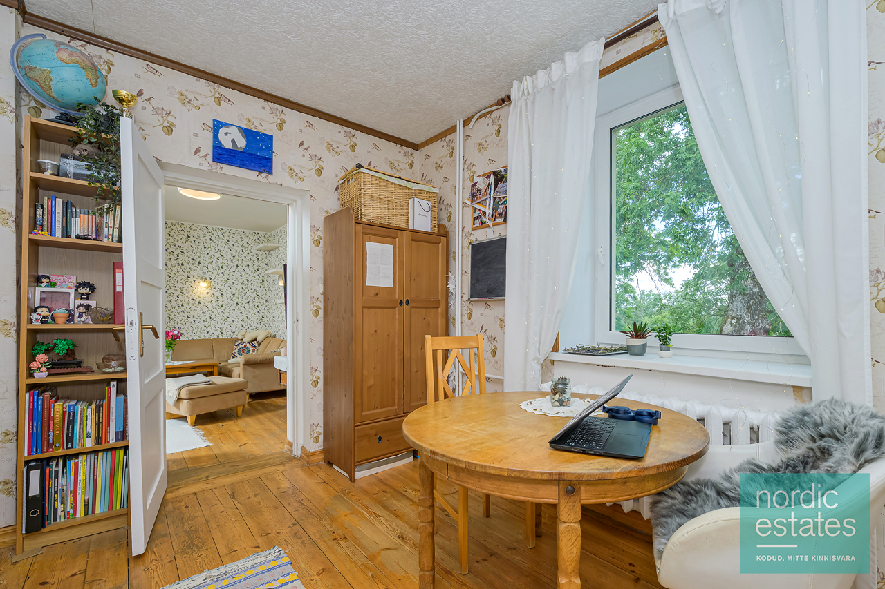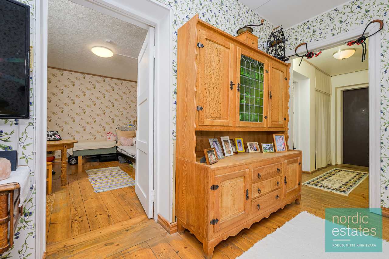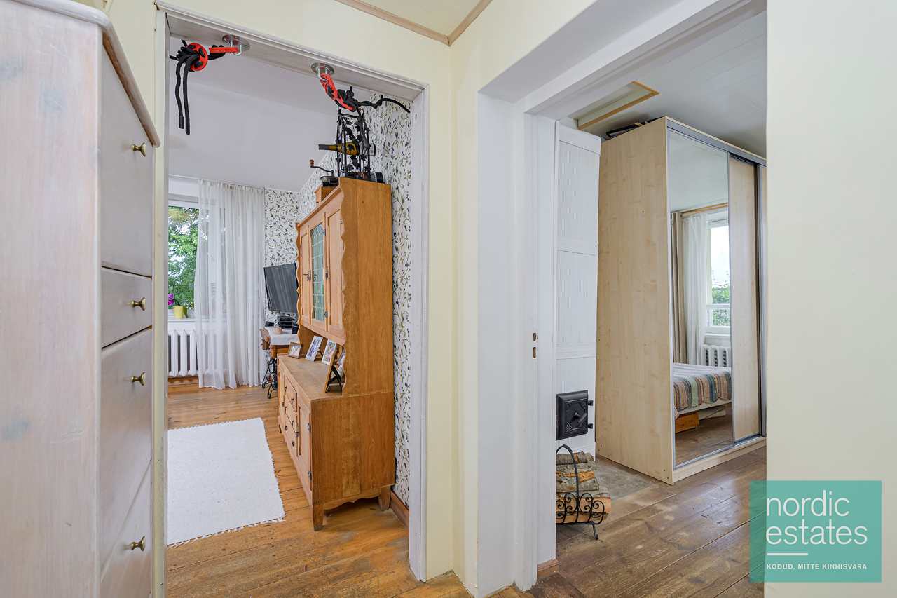 KORTER asetseb maja teisel korrusel ja vaatab akendega suisa kolme suunda. Toad on mõnusalt ruumikad ja seinad iseloomulikud kivimajale – st ei mingeid kipsseinu. Kiviseinad hoiavad toad suvel leitsakuga jahedad. Siit leiad ka originaalse laudpõranda, mis jalale sõbralik astuda. Kui Sa hindad ajaloo talletatud radu, siis oled õigel teel. kohtub toonasega köögi-elutoa osas, kus vaheseina likvideerimise näol on antud ruumile kaasaegset hingamisruumi. Ümberehitus on legaliseeritud.