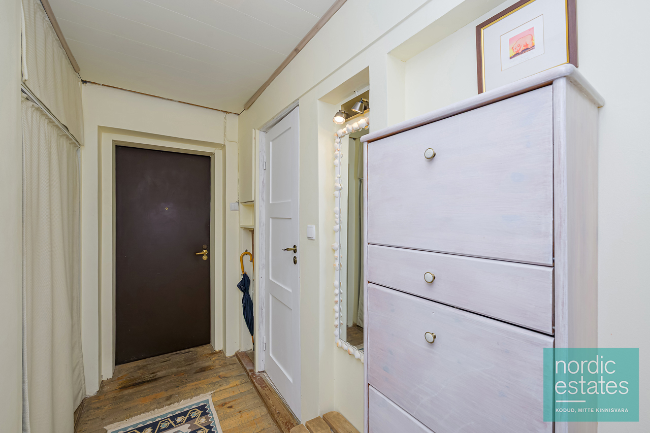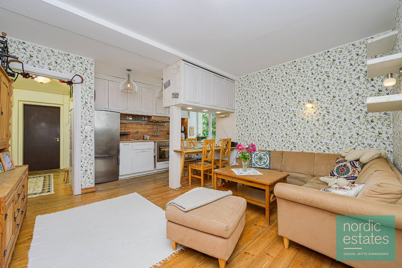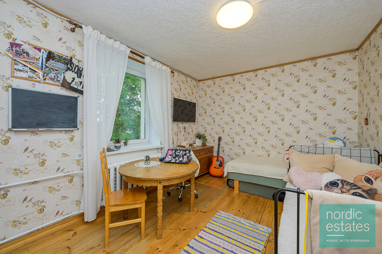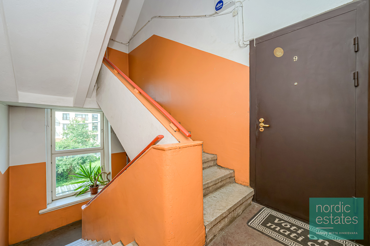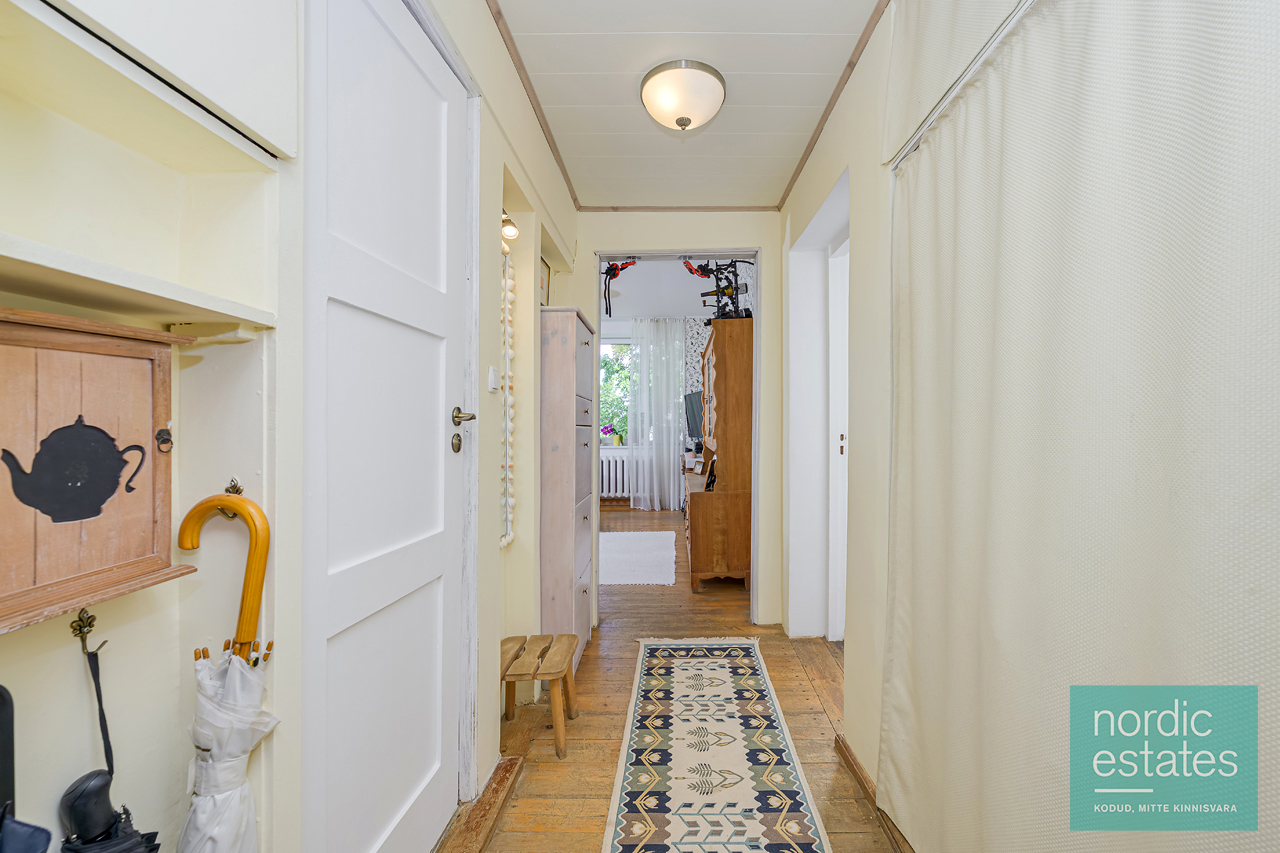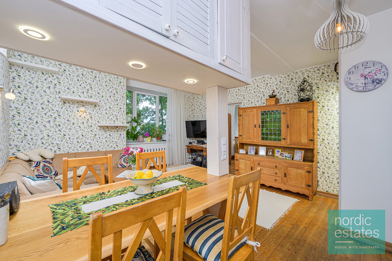 KORTER asetseb maja teisel korrusel ja vaatab akendega suisa kolme suunda. Toad on mõnusalt ruumikad ja seinad iseloomulikud kivimajale – st ei mingeid kipsseinu. Kiviseinad hoiavad toad suvel leitsakuga jahedad. Siit leiad ka originaalse laudpõranda, mis jalale sõbralik astuda. Kui Sa hindad ajaloo talletatud radu, siis oled õigel teel. kohtub toonasega köögi-elutoa osas, kus vaheseina likvideerimise näol on antud ruumile kaasaegset hingamisruumi. Ümberehitus on legaliseeritud.