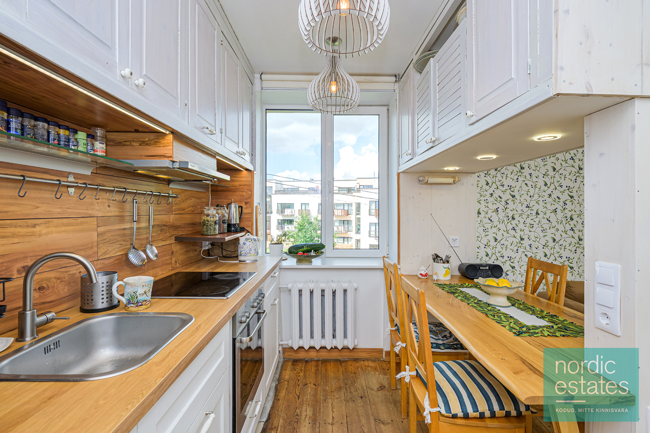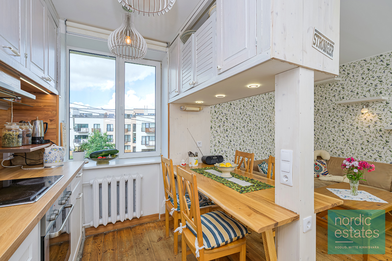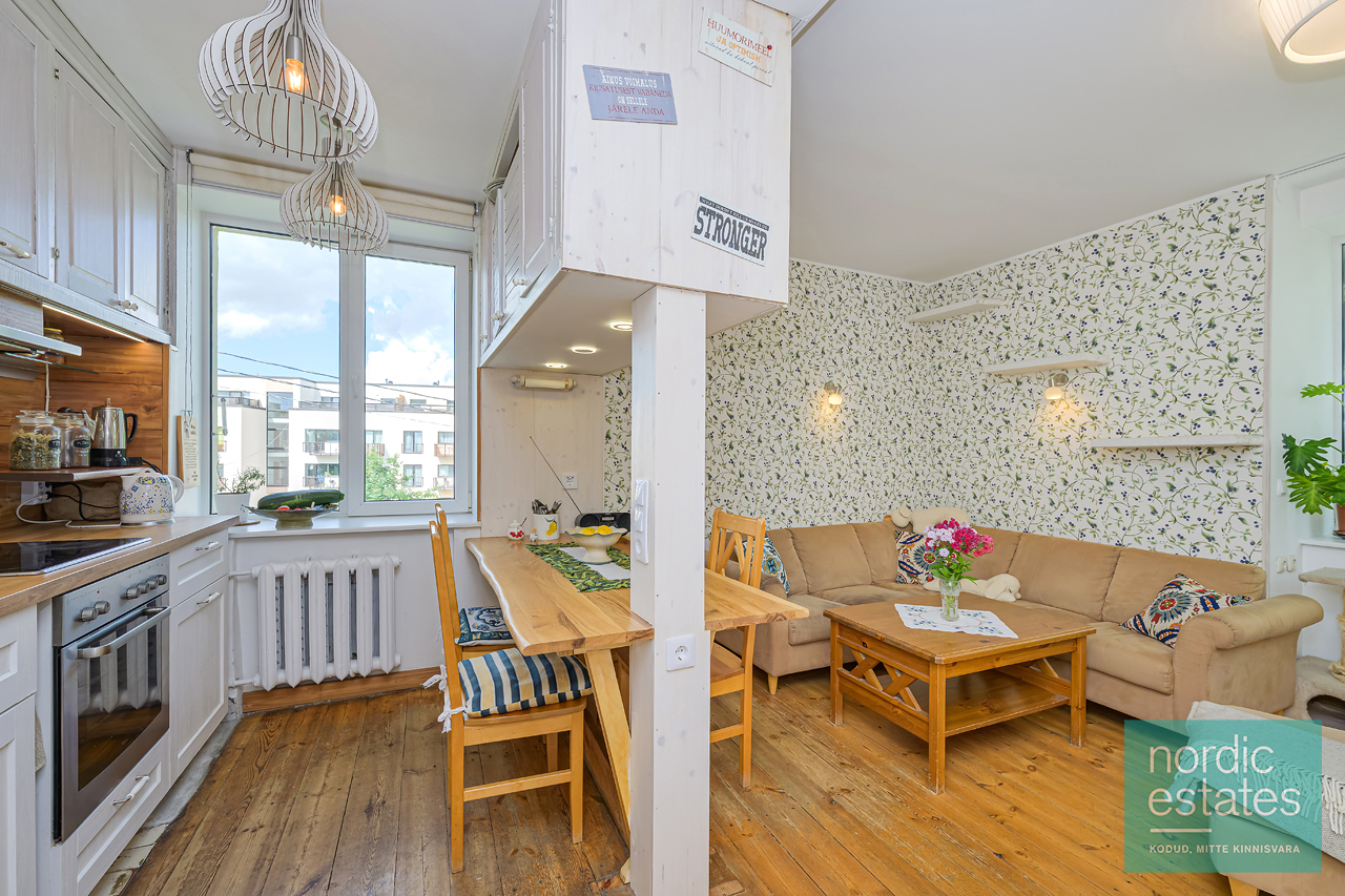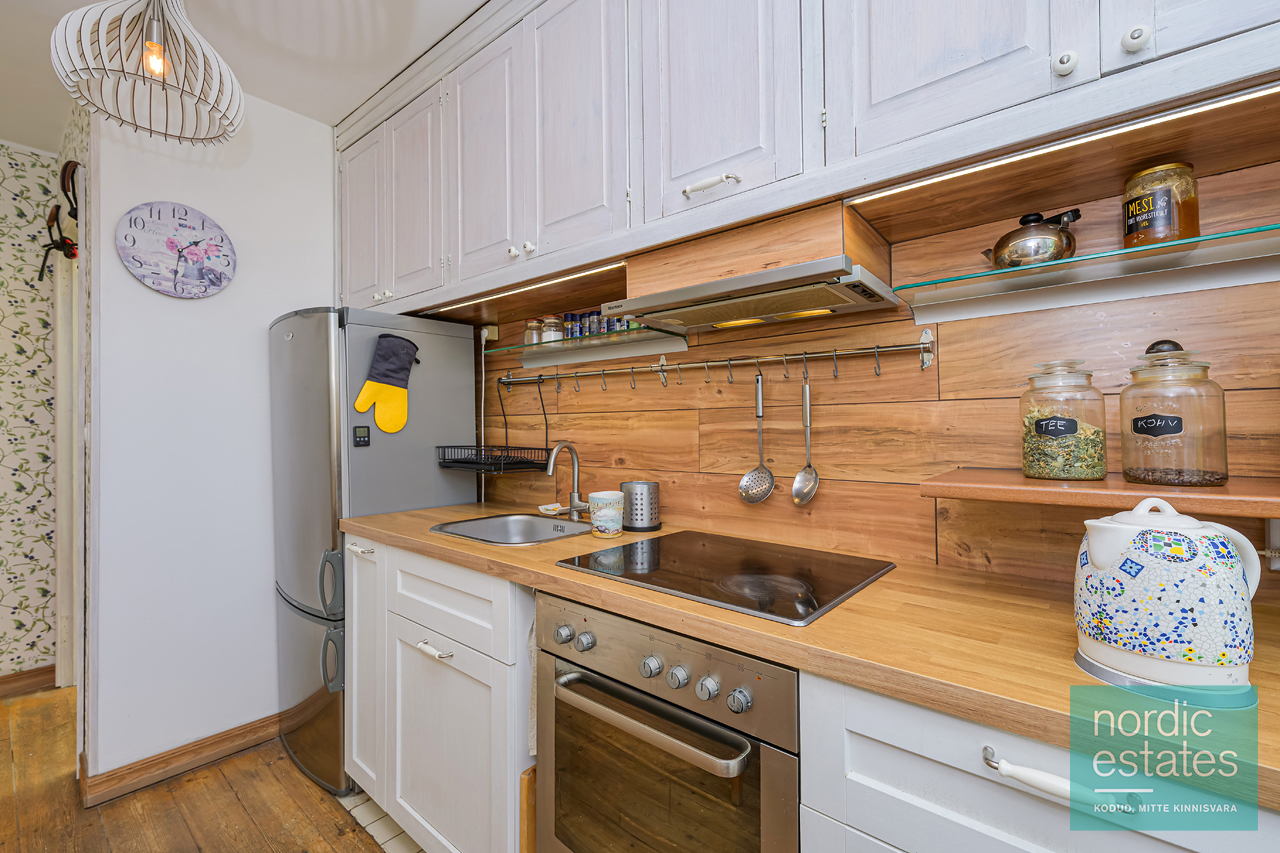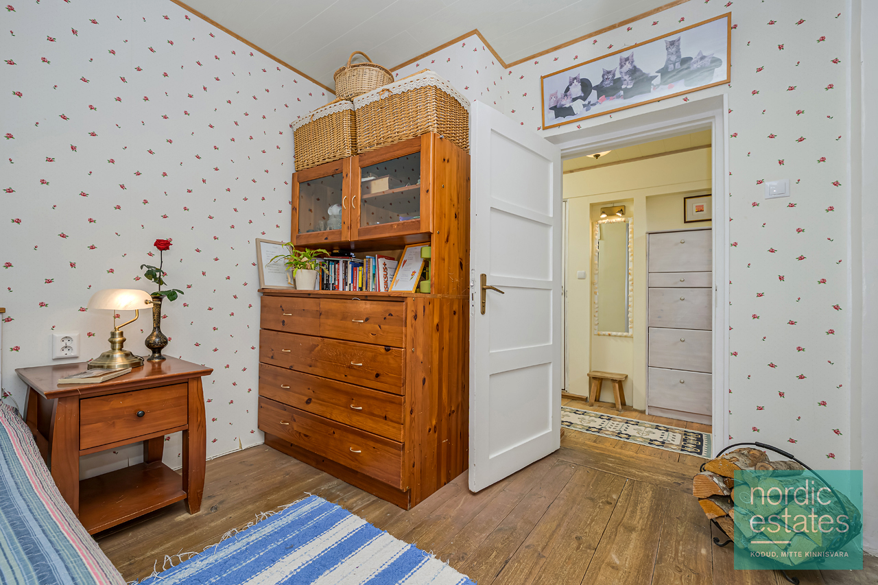 KORTER asetseb maja teisel korrusel ja vaatab akendega suisa kolme suunda. Toad on mõnusalt ruumikad ja seinad iseloomulikud kivimajale – st ei mingeid kipsseinu. Kiviseinad hoiavad toad suvel leitsakuga jahedad. Siit leiad ka originaalse laudpõranda, mis jalale sõbralik astuda. Kui Sa hindad ajaloo talletatud radu, siis oled õigel teel. kohtub toonasega köögi-elutoa osas, kus vaheseina likvideerimise näol on antud ruumile kaasaegset hingamisruumi. Ümberehitus on legaliseeritud.