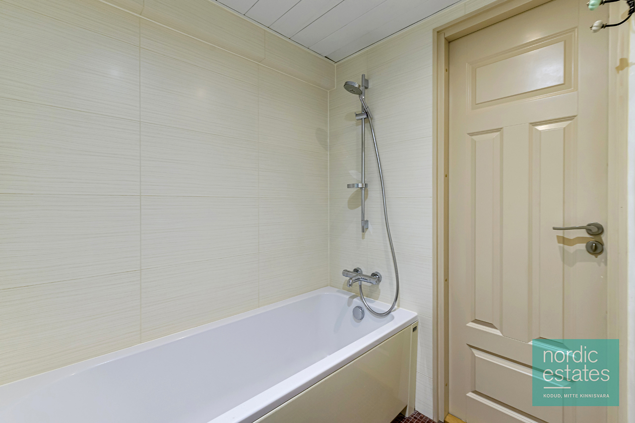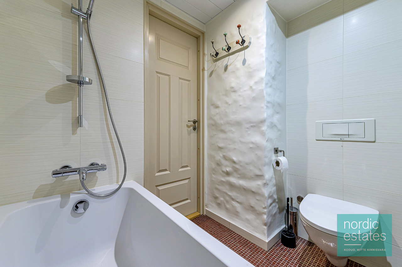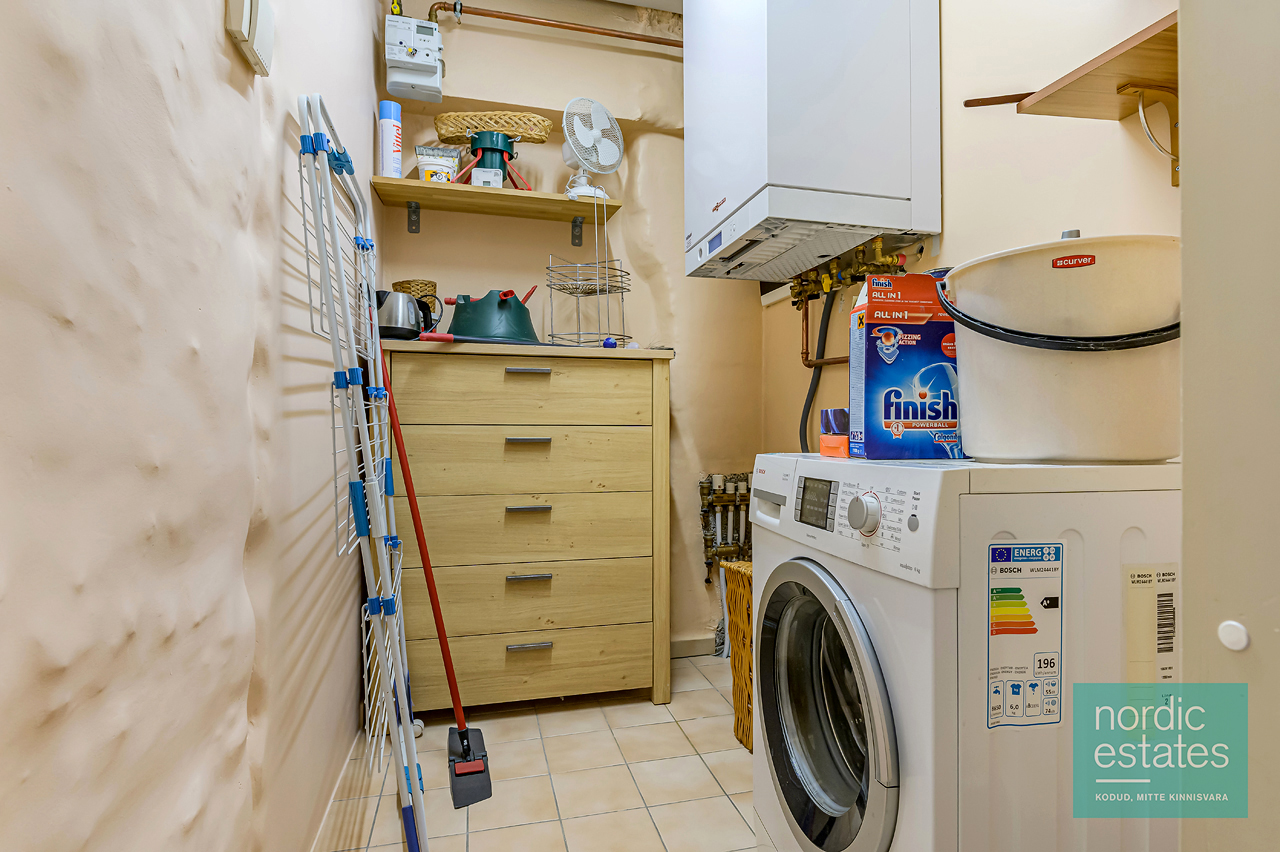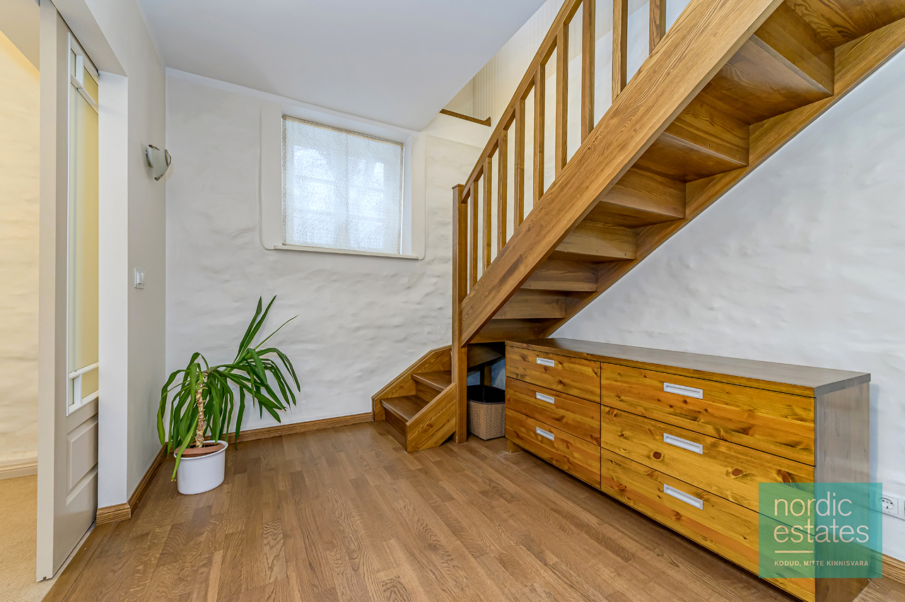 Müügipakkumises 2-toaline KODU, mis asub läbi kahe korruse (esimene- ja soklikorrus). Tänu kõrgele soklile vaatab silm esimese korruse aknast selgelt üle peade. Siit kodust leiad: avara esiku; kompaktse köögi, kus iga nurk kasutust leiab; elu- ja söögitoa, mille keskmes kamin-ahi soojendab ihu ja hinge. Elutoa-söögitoa osas põrandal naturaalne parkett, esiku-köögiosas praktiline põrandaplaat. Soklikorruse põrandaid katab naturaalne vaipkate. Korteri seinad topeltisoleeritud helipidavate mattidega. Soklikorrusel eesruum, mis passib ka töötoaks ja olles loominguline, võid luua siia vahva mängupesa lapsele. Korterisisene panipaik kannab ka majapidamisruumi funktsiooni. Magamistuppa viivad lükanduksed meenutavad 1930ndate joont. Magamistuba ise on nagu väike sviit – siit leiad ka vannitoa, luksuslik praktilisus!