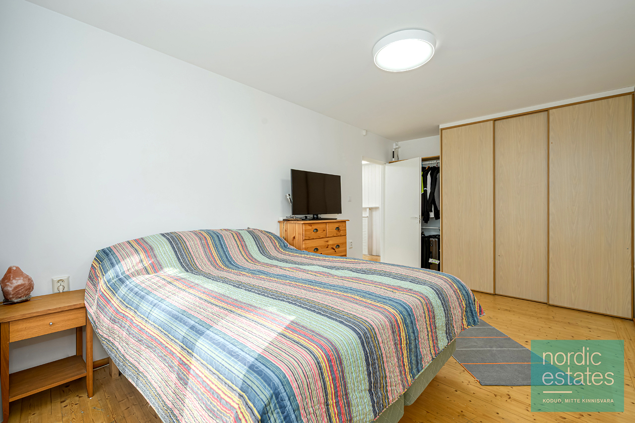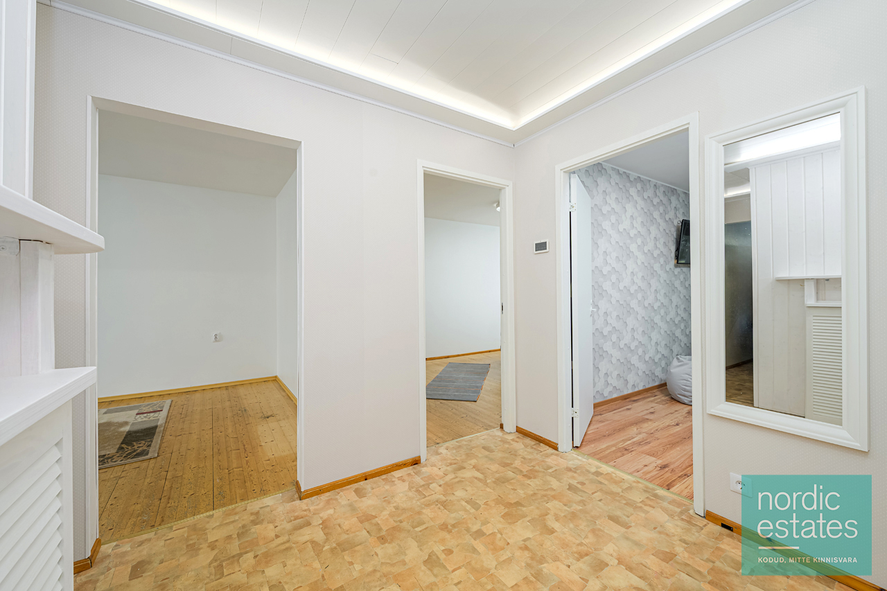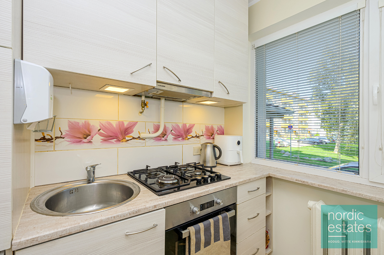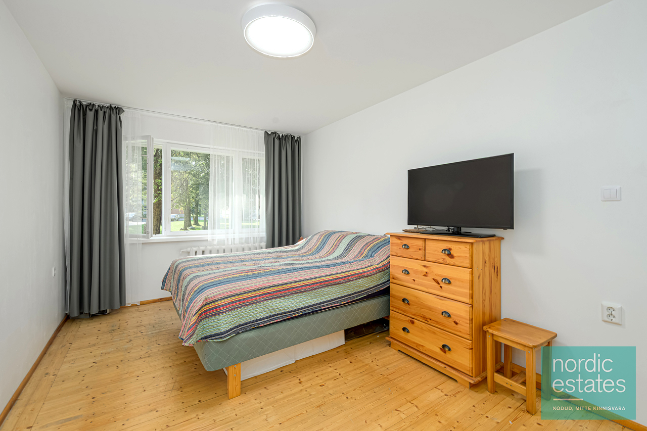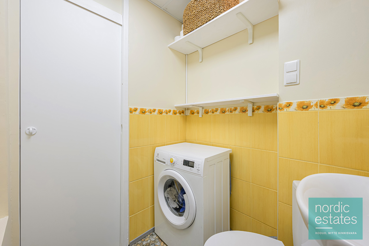 KORTER on läbimaja planeeringuga, kus tube on kolm. Kuigi tegu on 1. korrusega, siis vaated on rohelised. Esik on mõnusalt ruumikas. Köögis eritellimusööbel, gaasipliit ja elektriline küpsetusahi. Nõud saab puhtaks nõudepesumasinaga. Olgu mainitud, et need jäävad ka uut pererahvast teenima. Vannituba pakub rõõmu pere pisematele ja romantikutele praktilise nurgavanni näol. Kõik aknad, v.a. ühel toal on vahetatud. Väiksem magamistuba ja esik tapeeditud, ülejäänud toad värvitud. Tubade põrandad vahetatud laudpõrandate vastu, suuremates tubades seinad ja laed tasandatud. Osaliselt vahetatud elektrijuhtmestik. Korter on äsja läbinud sanitaarremondi. Olemas on signalisatsioon.