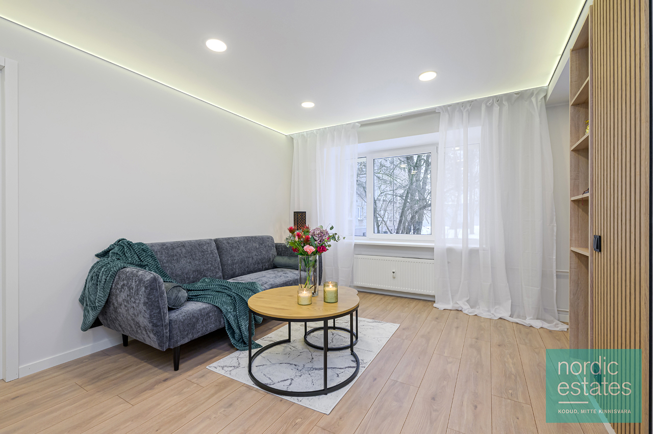 KORTER asub maja 1. korrusel ja vaatab akendega maja taha. Siin on olemas kõik, mida eluks-oluks vajad! Siseviimistlus on uueväärne. Kodu disain on nooruslik, elegantne, ent samas läbi mõeldud ja ruumi on jäetud ka mõttelennule. Korralik garderoobikapp, kuhu saad vaevata riputada isegi pika õhtukleidi. Läbimõeldud valguslahendus loob meeleolu. Ja see vannituba – luksuseks pole vaja paljut.